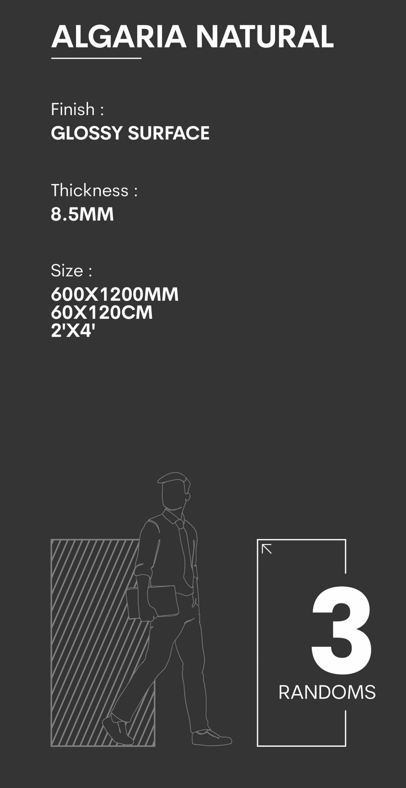 Finish : Glossy surface , size : 2’x4′, Weight (kg): 27.5 , height: 8.5mm