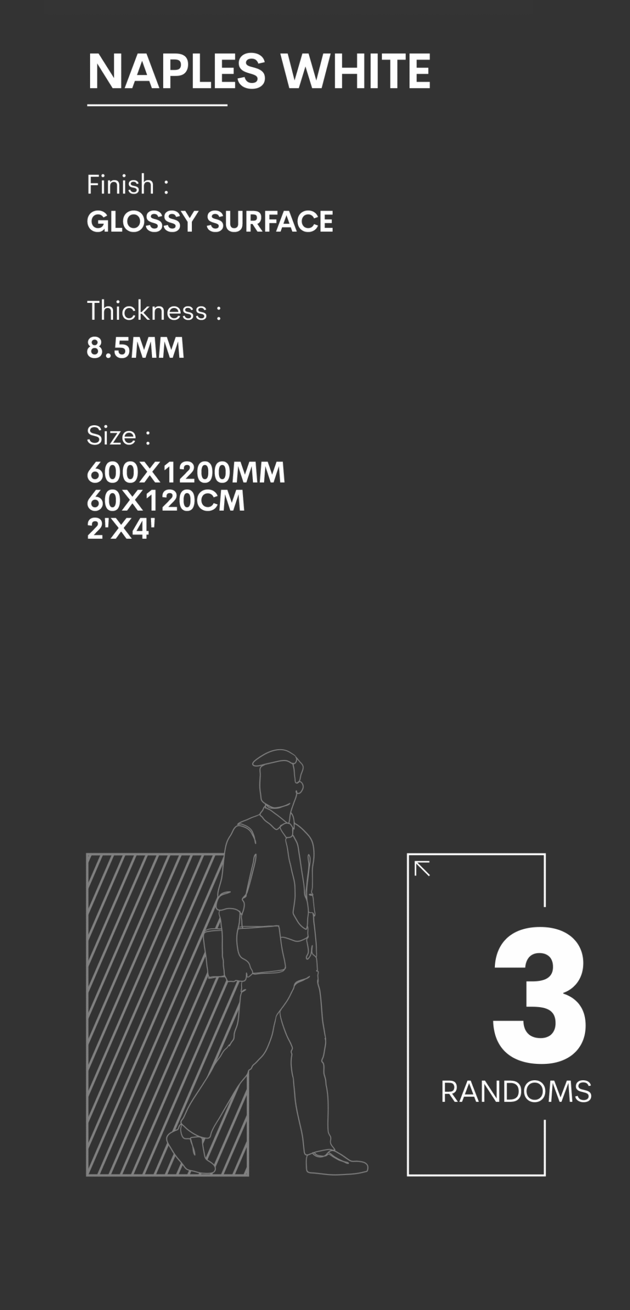 Finish : Glossy surface , Size : 2’x4′, Weight (kg): 27.5 , Thikness: 8.5mm